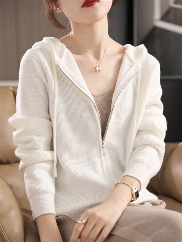 とってもおすすめです フード付き セーター コート ジッパー ニットトップス カーディガン 大人気
