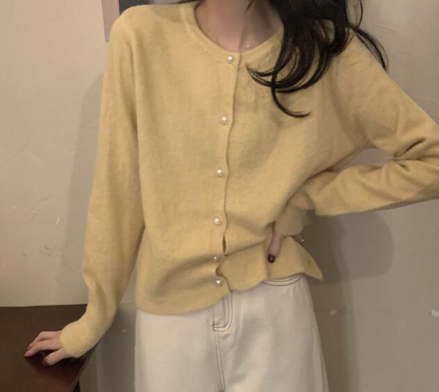 暖かく、着心地の良いニットセーターです。ふんわりとした毛糸素材で作られており、寒い季節に最適なアイテムです。このセーターは、無地でシンプルなデザインなので、どんなスタイルにも合わせやすいです。カーディガンタイプなので、着脱が簡単で便利です。